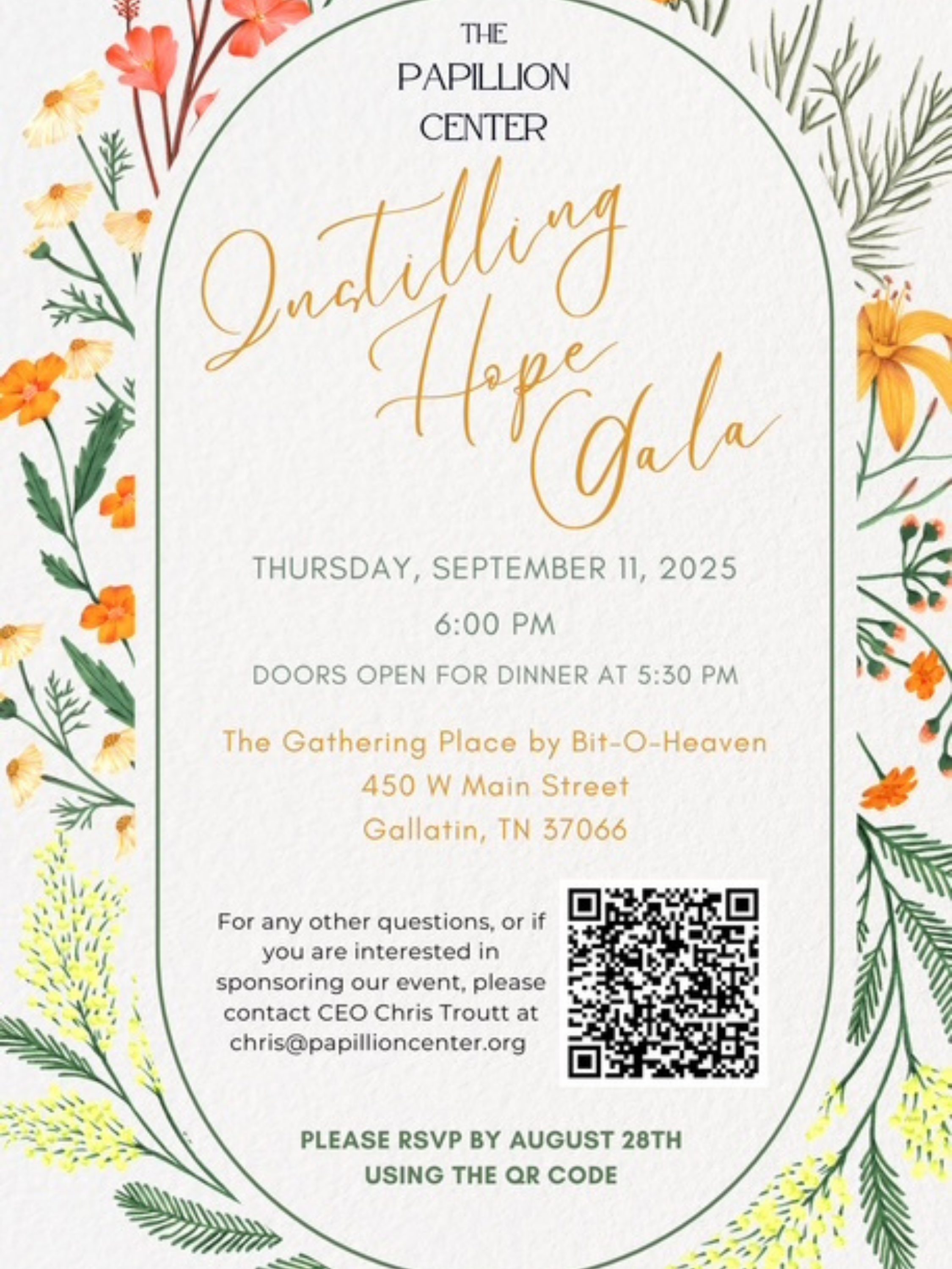Join us for our annual gala as we showcase The Papillion Center of Gallatin, its impact worldwide, and how you can consider becoming a partner. Please click HERE to let us know you will be attending!